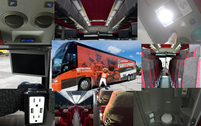 Ride like royalty to the game with Metro Magazines Motorcoach Operator of the Year! Barons Bus Lines have comfortable seats, overhead tv monitors, adjustable air vents, controlled overhead lighting, plug outlets for 110 or USB at every seat, a clean spacious bathroom......and that's just the beginning! Barron Bus has interior FAR UV lighting which kills 99.9% of germs and is safe for skin and eyes.